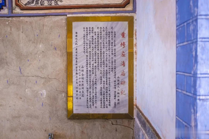 尽然,这座应海庙“主祀南诏烈士段赤城,始建于明英宗正宗十二年(1447年),距今已有560多年历史。庙内现有《龙王碑铭》和2006年重修的《重修应海庙碑记》,纪录了其屡次修缮经过,最近一次为2006年重建为钢筋混凝土结构”,不外它的建筑领域如实比文昌宫要大一些,摆布还诞生有近似配房的小屋。