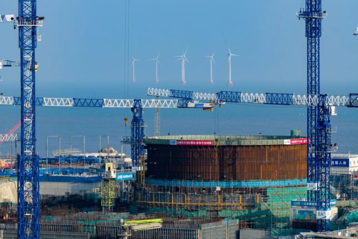 12月15日,浙江宁波象山县金七门核电名目斥地现场,机械轰鸣,施工东谈主员有序功课。章勇涛摄