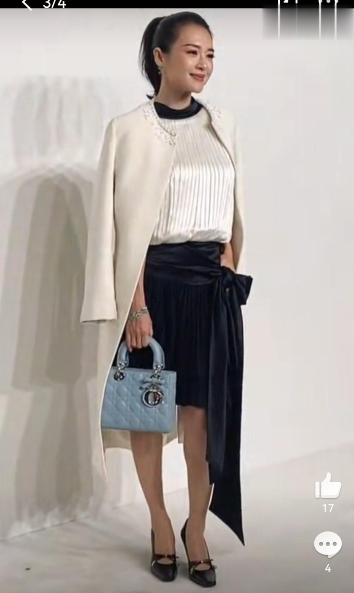 46岁章子怡迪奥手脚亮相, 高马尾造型, 如仙女般眇小, 减龄20岁