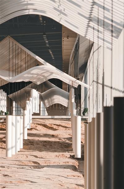 明代大酬金寺的南北画廊曾“壮丽甲寰宇”。如今,北画廊名胜不错看出建筑的柱距、开间,名胜上空吊挂的白色灯柱模拟畴昔画廊的立柱,6根灯柱围起来便是一间画廊的大小。南画廊名胜原貌已不存,故将其建为艺术空间,展示了28幅17—19世纪的铜版画(复成品),呈现了历史上南京城与大酬金寺塔的风貌。